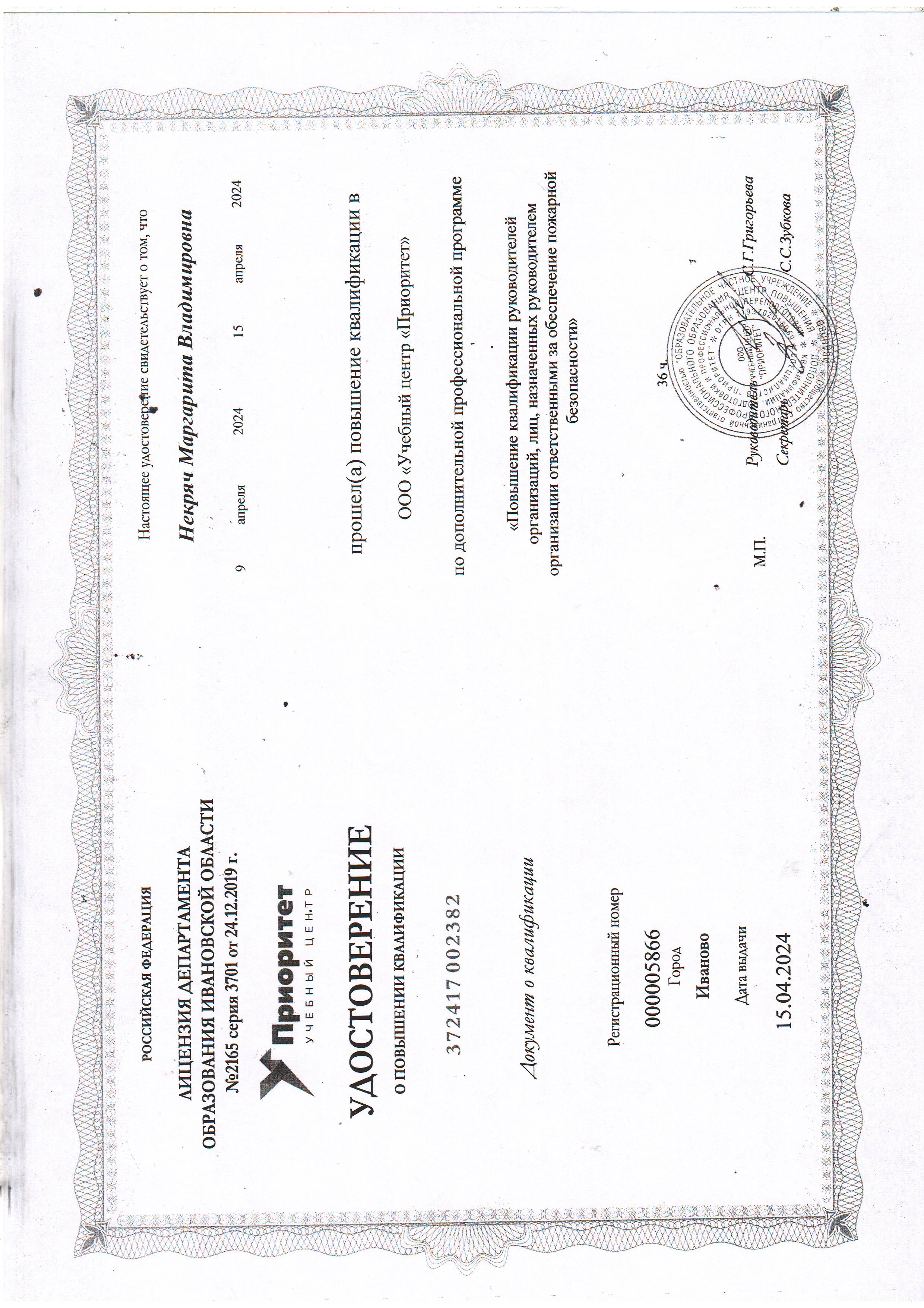 (ООО "Учебный центр "Приоритет" . 36часов. Форма обучения: дистанционная. Направленность: иное).